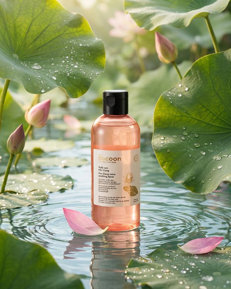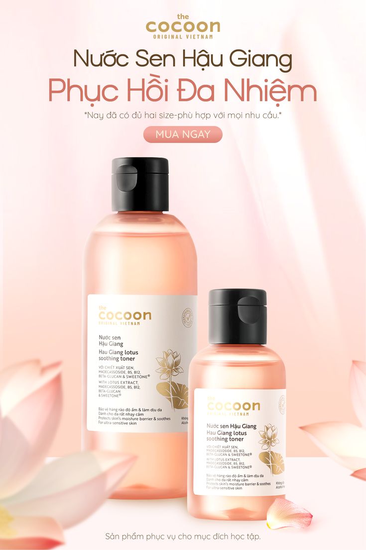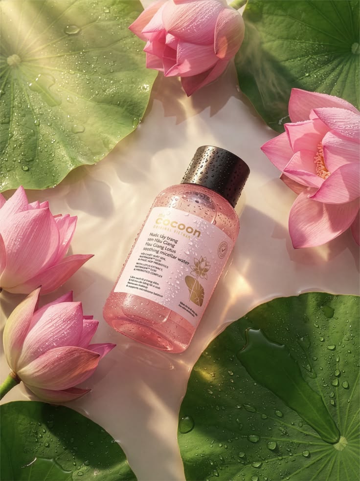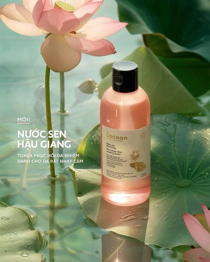 Cocoon mang đến dòng sản phẩm Sen Hậu Giang – lấy cảm hứng từ những cánh đồng sen thuần khiết tại miền Tây Việt Nam. Đây là dòng mỹ phẩm 100% thuần chay, không thử nghiệm trên động vật và cực kỳ lành tính cho da.